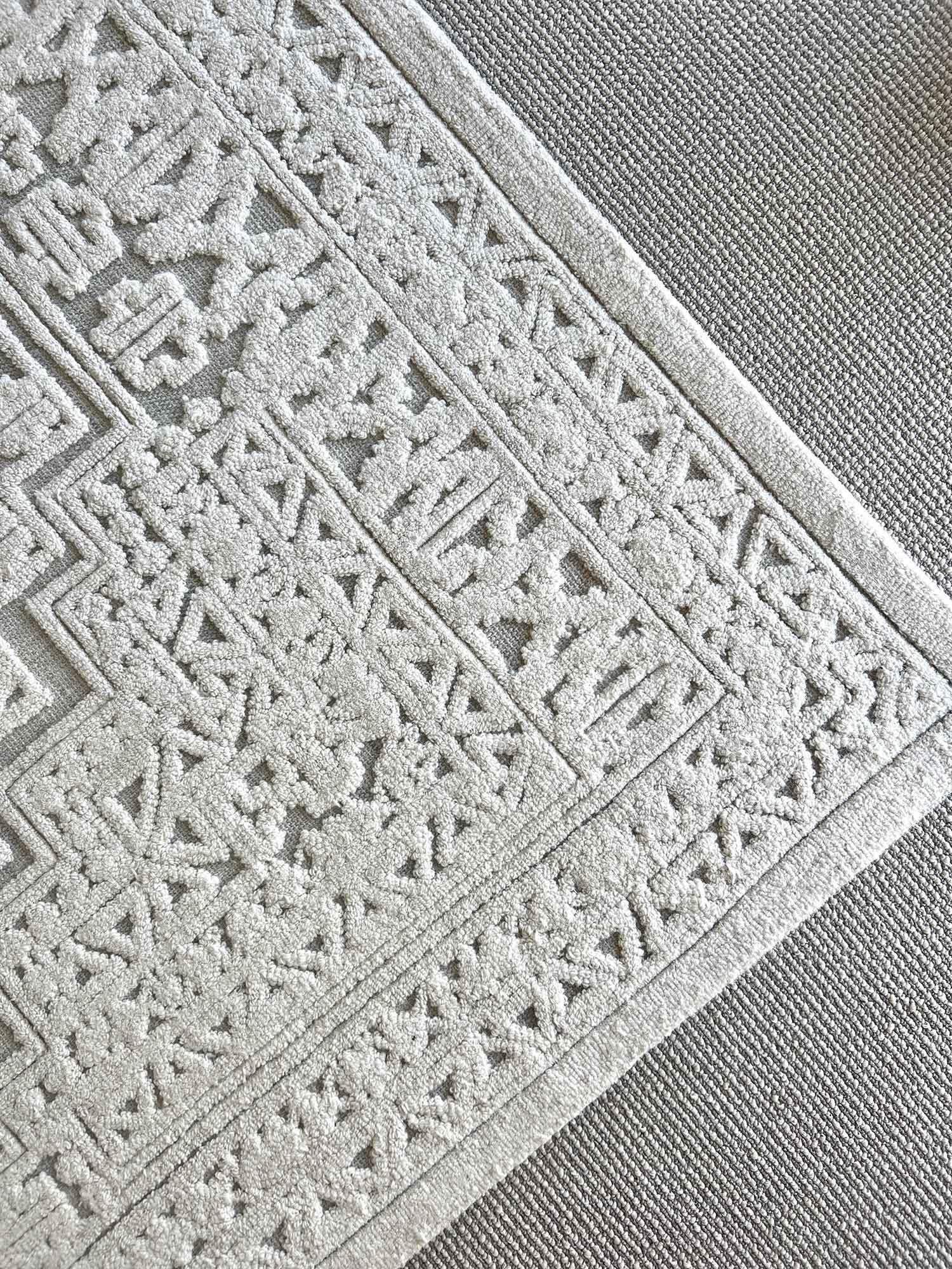 Handmade in India into a super soft 5mm blended high low weave of 90% wool 10% cotton construction with 100% cotton backing.