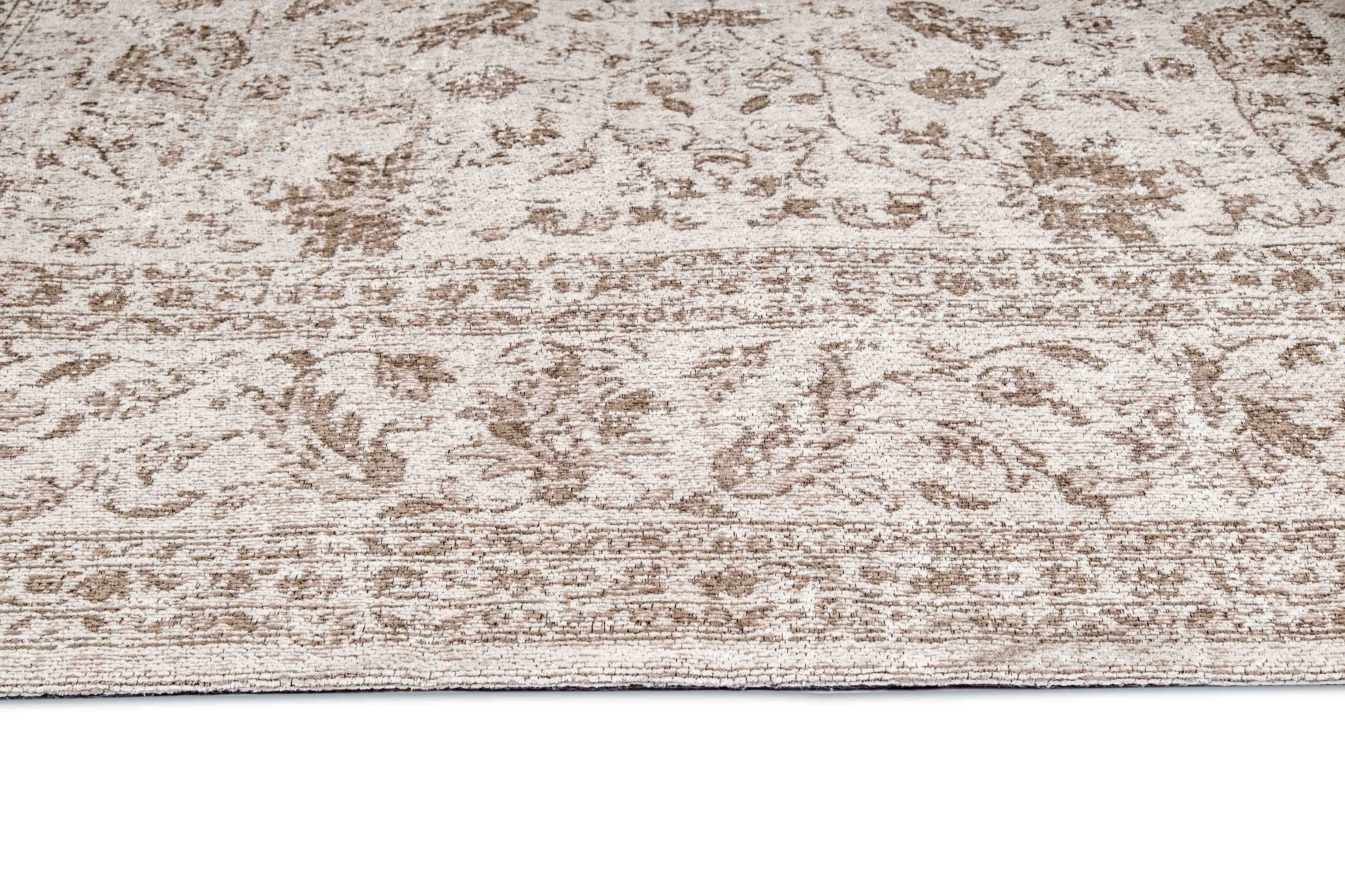 Moselle is a beautiful warm ivory beige and faded tan brown bordered floral motif rug in a traditional distressed style.